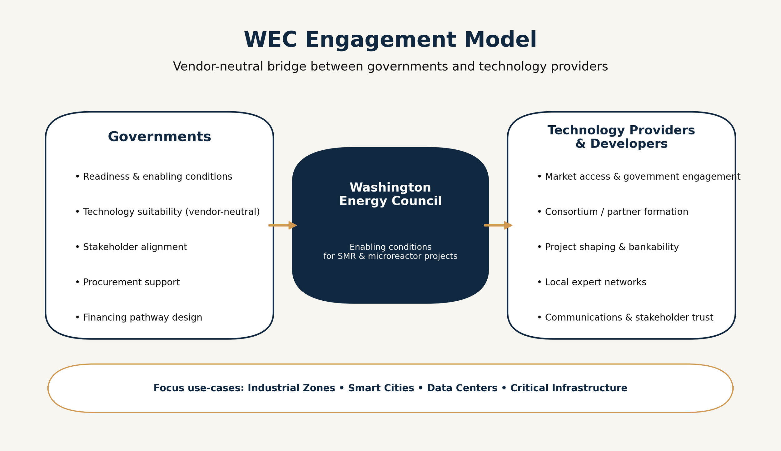 WEC helps governments create conditions for SMR and Microreactor deployment - from early interest to bankable, implementable projects
