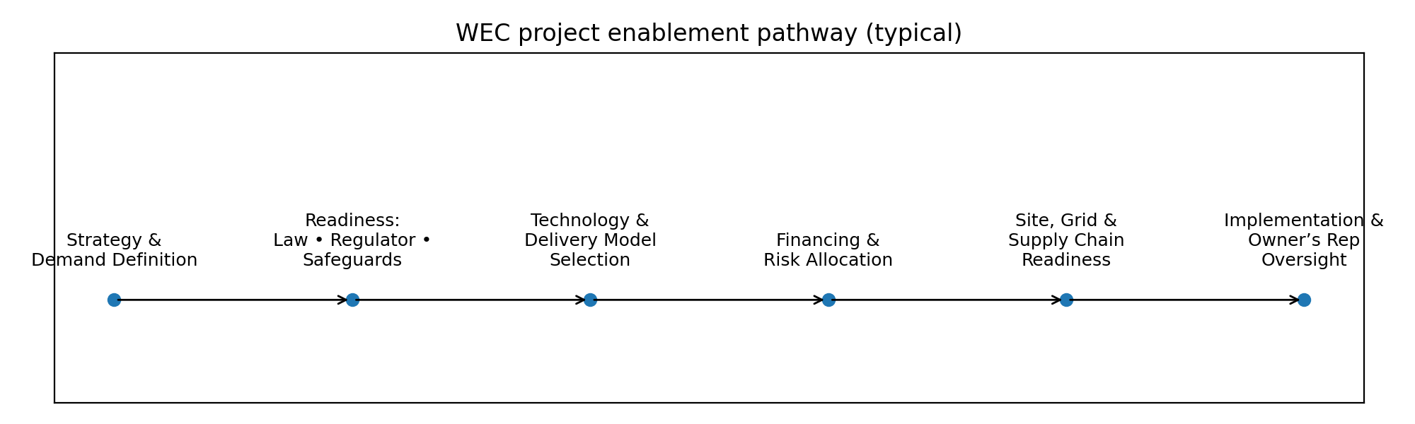 WEC supports providers with a structured pathway that reduces dead‑ends and increases conversion from MoUs to executable projects.